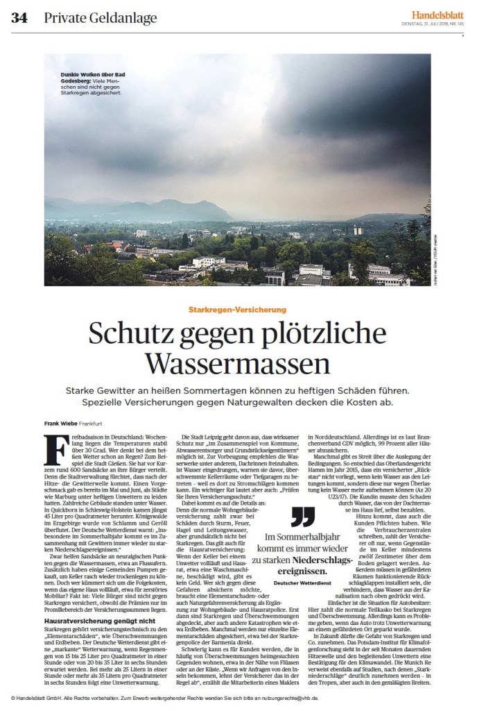 2018 Publication im Handelsblatt Nr. 145 (Germany)